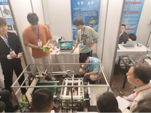 比赛现场,全省各高校参赛作品亮点纷呈、各有千秋,充分展现了当代大学生扎实的专业功底与出众的创新实践能力。叶菜组参赛作品聚焦叶菜清洗、去根、包装一体化智能加工需求,打造高效环保的自动化装备;蝴蝶组作品深耕微型扑翼飞行器设计,实现仿生结构与智能控制的深度融合,各参赛队伍凭借精巧的机械设计、流畅的现场演示,上演了一场机械创新的精彩盛宴。