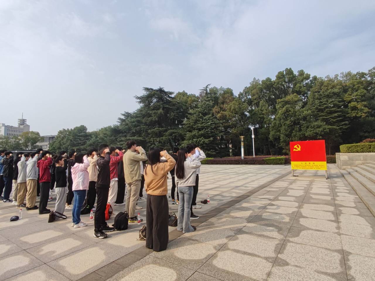 活动现场,气氛庄严肃穆,面对着党旗,学生第二党支部书记方志刚带领全体党员重温入党誓词,追忆初心使命。面对纪念碑,全体党员向烈士三鞠躬,向烈士默哀一分钟,表达对革命先烈的无限哀思和敬意,缅怀先烈们为中国人民解放事业和共和国建设事业做出的丰功伟绩。