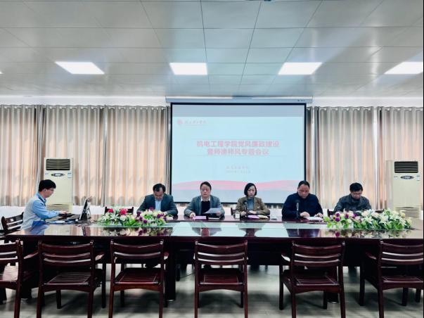 3月11日,TYC234CC太阳成集团在K1-414会议室召开党风廉政建设暨师德师风专题会议。TYC234CC太阳成集团领导班子、全体教职工共同参与本次会议。会议由TYC234CC太阳成集团党支部副书记胡涛主持。