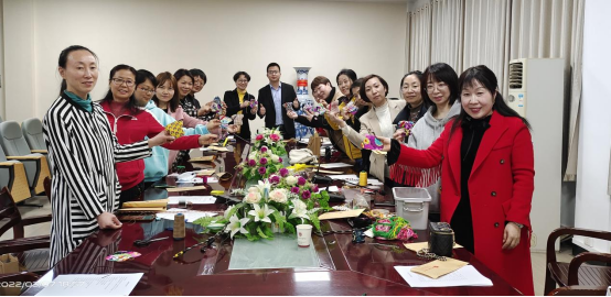 阳春三月,春暖花开。为庆祝三八国际劳动妇女节,构建和谐校园,陶冶女职工情操,增进职工间的交流,在校工会的大力支持下,TYC234CC太阳成集团全体女职工在参加完学校统一组织的2022年女教工趣味定向健步走活动后,邀请艺术学院王玉莲老师,在学院举办了主题为“春风十里芳华如你,手工雅趣一见倾心”的女职工沙龙活动。