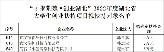 3个项目获2022年湖北省大学生创业扶持